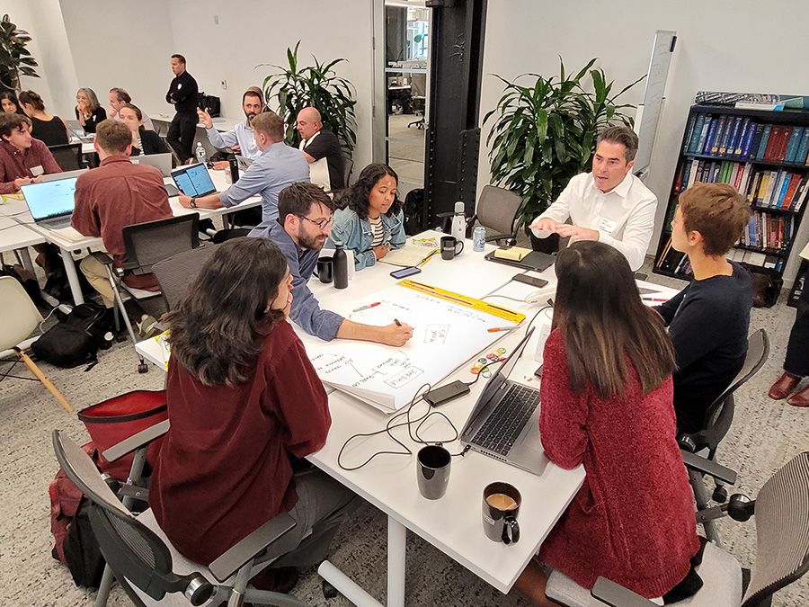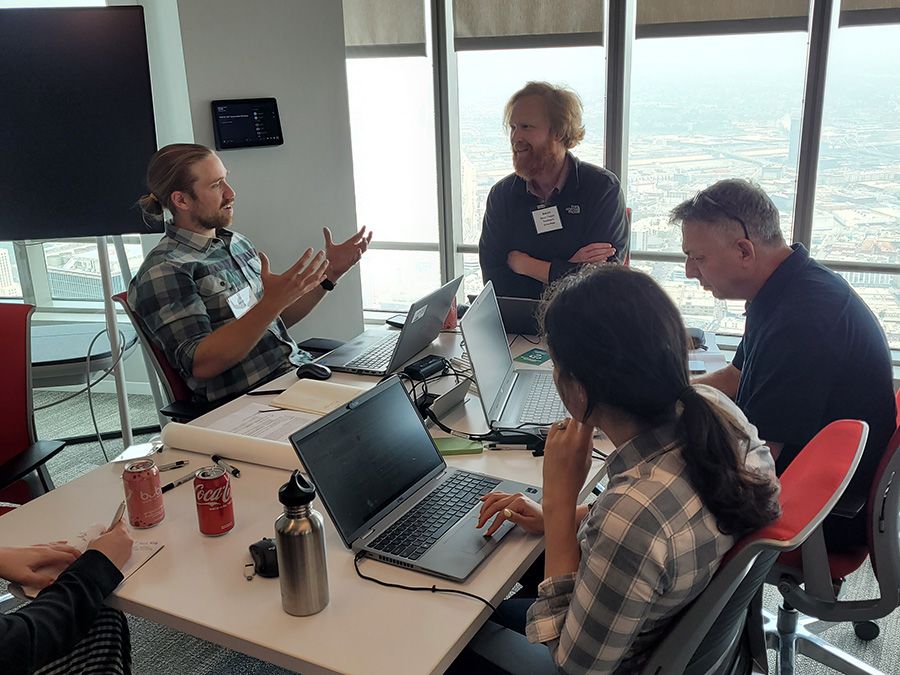 At Walter P Moore's Los Angeles office, AEC industry leaders collaborate on a hypothetical project plan that minimizes lifecycle carbon emissions for a building, resulting in the least waste at the end of the building's life.