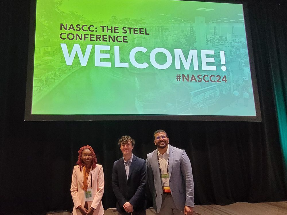 Mercy Kangogo from Tennessee State University, Robert Bailey Bond from Northeastern University, and Ahmad Hassan of Degenkolb Engineers (the 2024 Reidar Bjorhovde Award recipient) participated in events and sessions at NASCC: The Steel Conference in 2024 thanks to funding from the AISC Education Foundation.