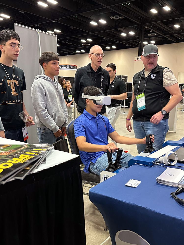 San Antonio Career and Technical Education (CTE) students watch a classmate operate a crane simulator.