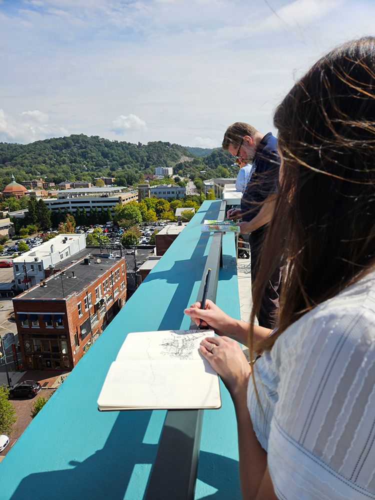 Architects sketch the cityscape at the AISC Architecture Center's urban sketching event.